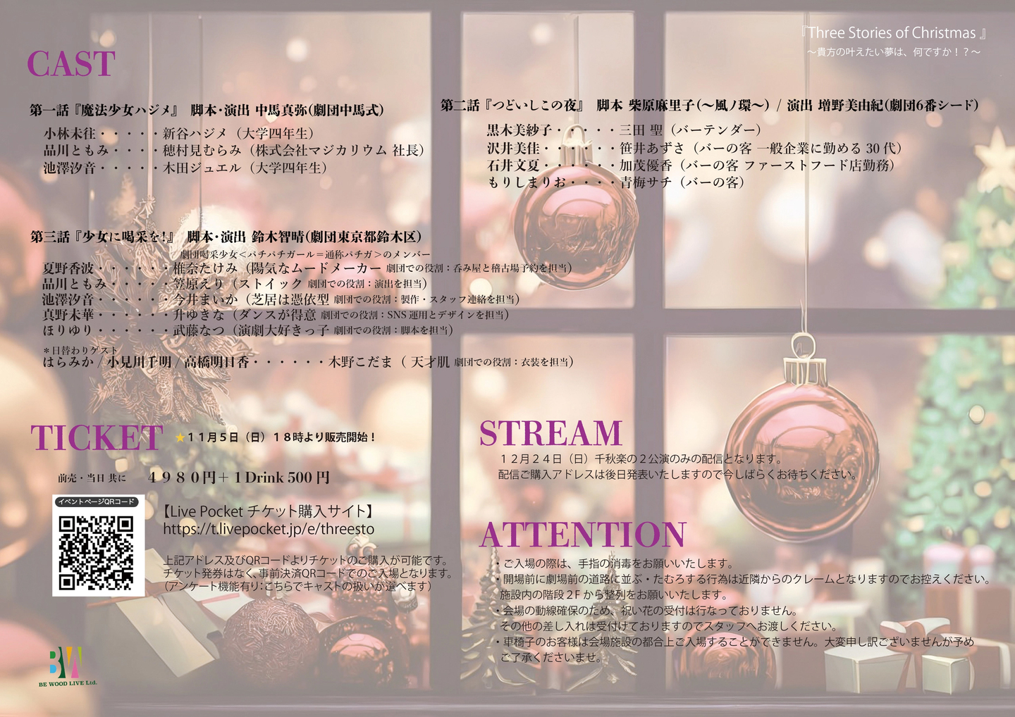 2023年冬公演は、クリスマスにまつわる三話のオムニバスストーリーをお届けいたします。