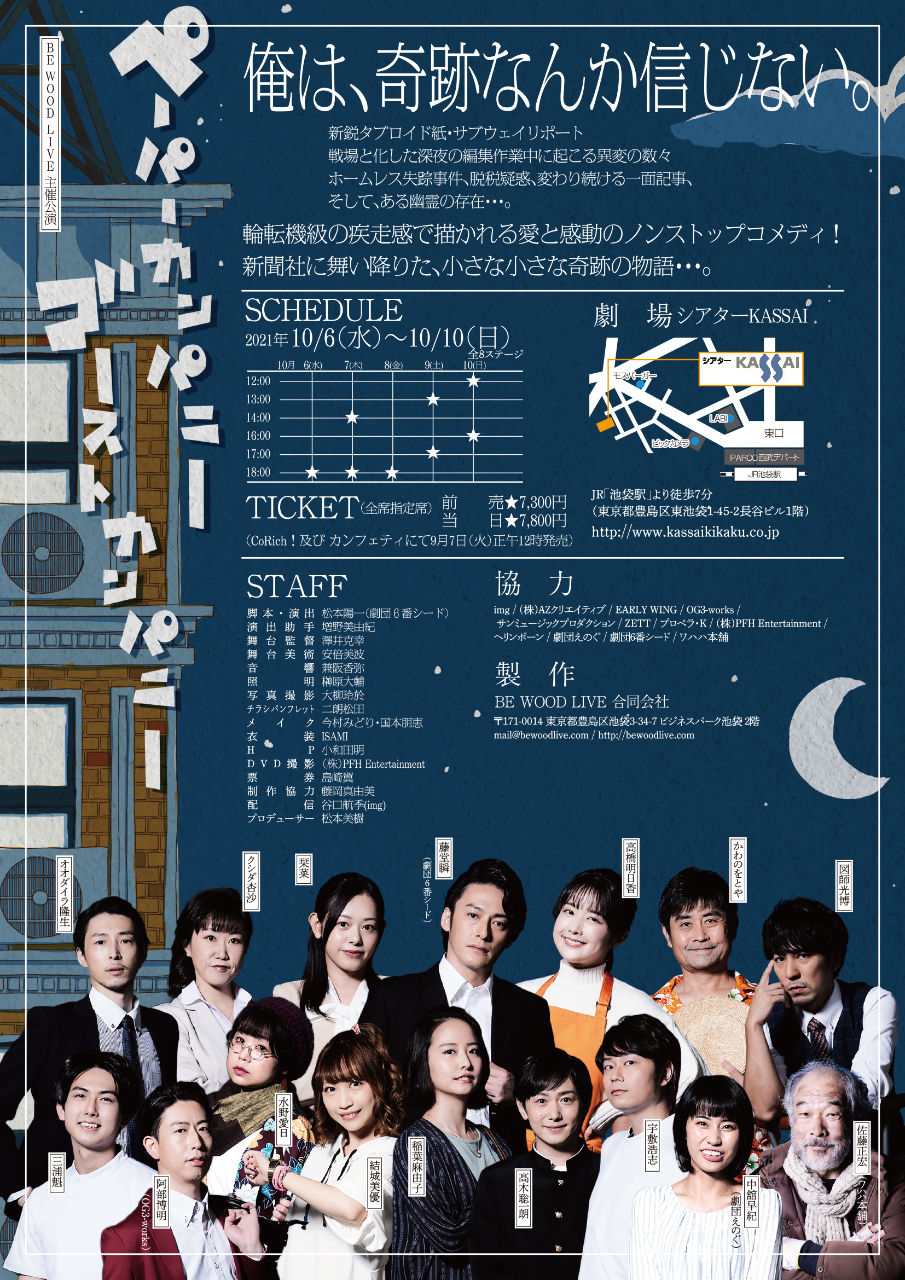 脚本・演出:松本陽一(劇団6番シード)/ 舞台監督:澤井克幸 /舞台美術:青木拓也 / 照明:榊原大輔 / 音響:兼坂香弥 / 宣伝美術:二朗松田
